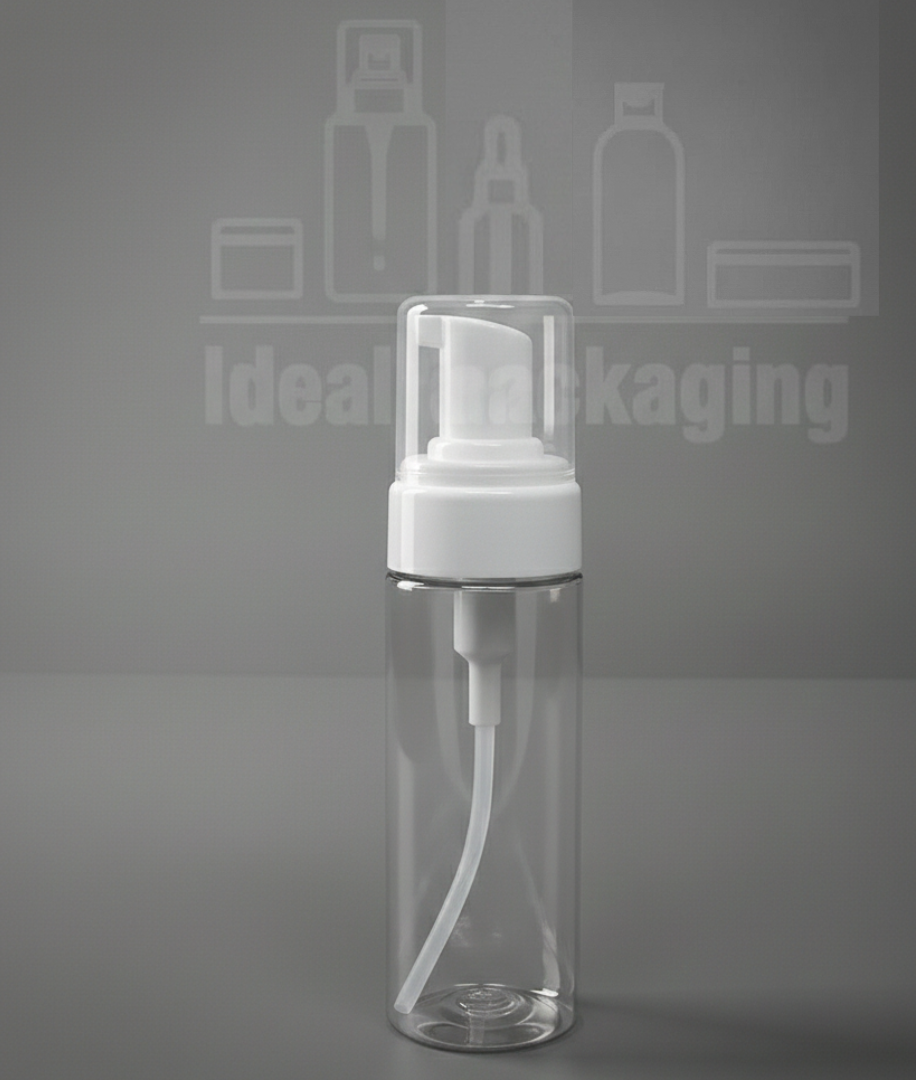 Flacon mouseur 150 ml – transparent avec pompe blanc